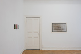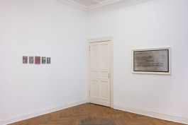 For this exhibition, Jonas Höschl shows three works. The latest is called 80 Portraits: 73 Männer, 7 Frauen, and it consists of a carousel slide projector, a device which recalls quaint nostalgic activities such as looking at vacation snaps. This one, however, runs through black-and-white photos, all depicting people in the same portrait format. Some of the poses are menacing, while the faces have been blurred out. The signifiers that these figures wear on their body—tattoos, shirts, logos, but also suits and folkloristic German apparel—betray their allegiance to far right groups. Höschl has sourced the images online, from anti-fascist networks where they have a clear purpose: mapping the Neonazi scene, documenting its protagonists, and potentially warning people who might fall victim to violent attacks. In the current setup, the pictures are lifted not only from their context, but also deprived of their function. They call to attention the mediated nature of photography: usually, photographer and subject are at considerable distance from each other, and only in rare cases the look is reciprocated, when the antifascists themselves are being photographed.