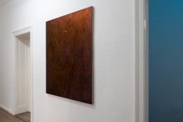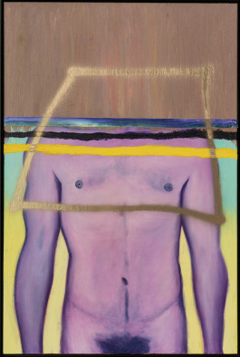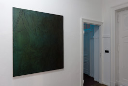 Self-Portrait (2018) by Götz Schramm raises the question of the possibility for genuine self-representation in the epoch of selfies and photos in social media, which distort rather than represent reality and make us forget who we really are. If Self-Portrait (2018) challenges the creation and representation of one’s persona, the painting Es hieß Privates muss Politisch sein (2018) questions the basis of our social and political life that structures our day-to-day reality. Here, Schramm uses a well-known silhouette of Marianne, a symbol of liberty from the prominent painting Liberty Leading the People (1830) by Eugène Delacroix. Such a symbol is intended to convey the tragedy of contemporary politics and the way in which politicians follow corrupted interests by using dehumanizing means under the aegis of democratic values. In this painting, Marianne changes color depending on the position of the viewer — in effect, depicting a two-faced political rhetoric that, in reality, is never what it seems.